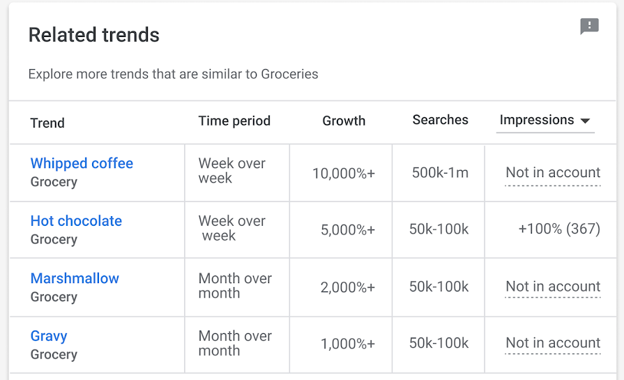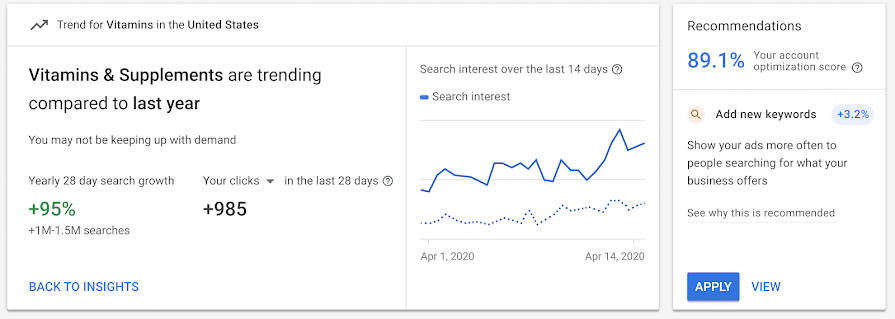 Insights может предложить вам тенденции по растущим категориям, которые вы в данный момент не охватываете — если это, разумеется, связано с направлением вашего бизнеса.