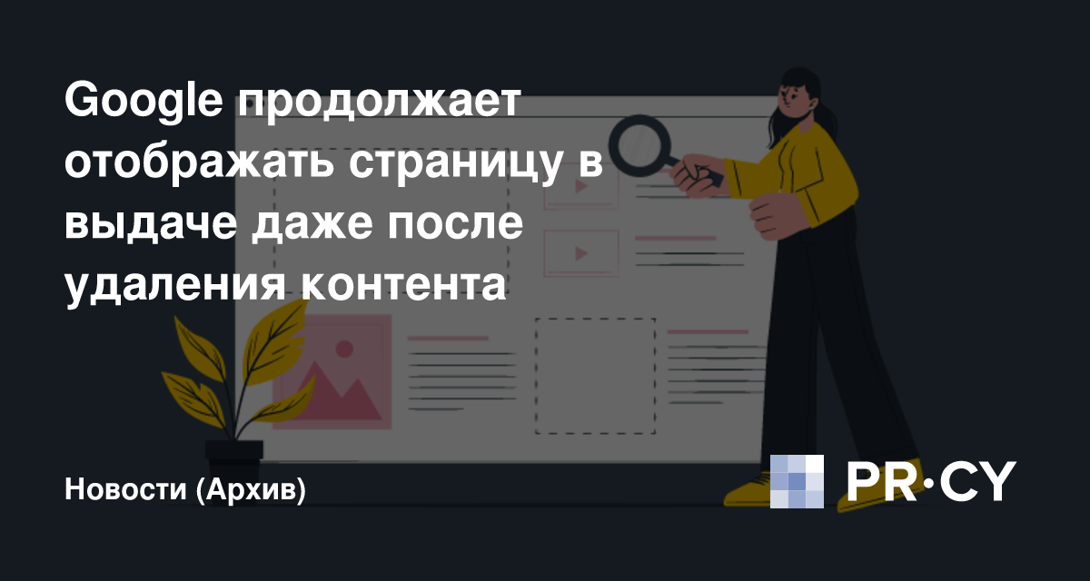 По словам представителя Google даже если информация со страницы была удалена, страница по-прежнему продолжает ранжироваться в результатах поиска. Так, если вы поменяли название своей организации, еще какое-то время она будет отображаться в выдаче по старому названию.