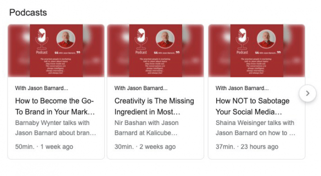 Как вы можете видеть, изображения стали значительно крупнее, а описания — подробнее. Новый дизайн отображается в выдаче только при наличии слова «podcast» в запросе. Некоторые оптимизаторы говорят, что она отображается не каждый раз. В связи с чем делают предположение, что этот тип выдачи пока тестируют.