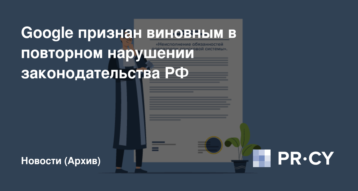 Как сообщает Роскомнадзор, 17 декабря мировым судьей судебного участка города Москвы было вынесено решение в деле Google. Поисковик повторно нарушил 149 ФЗ «Об информации, информационных технологиях и о защите информации». Этот закон обязывает поисковые системы исключать из выдачи ресурсы с запрещенной в РФ информацией.