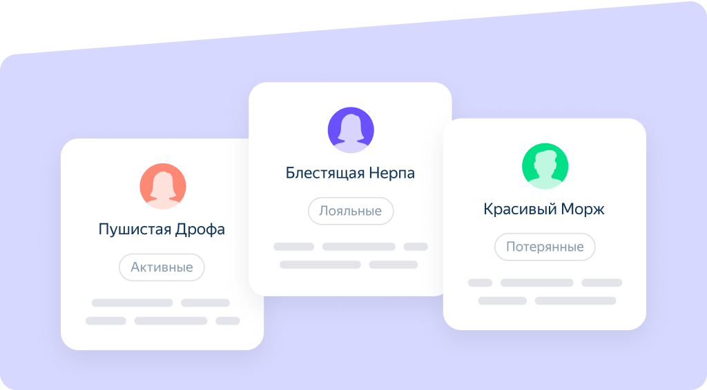 Для удобства все клиенты сразу же разделяются на сегменты. Например, те, кто оставил положительный отзыв, сразу же сортируются в «Лояльных», а те, кто не подавал никаких признаков жизни более трех месяцев — в «Потерянных».
