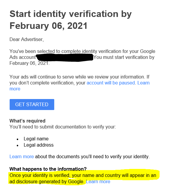 Google Ads анонсировал свою программу всеобщей верификации еще весной 2020. В ноябре они сделали заявления о том, что некоторые аккаунты могут быть приостановлены на период проверки. На днях в Твиттере первые зарубежные пользователи поделились скриншотами писем от Google Ads, в которых сообщается о грядущей проверке.