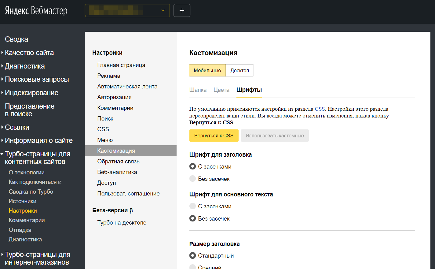 Настройка доступна как для мобильных, так и для десктопных Турбо-страниц.