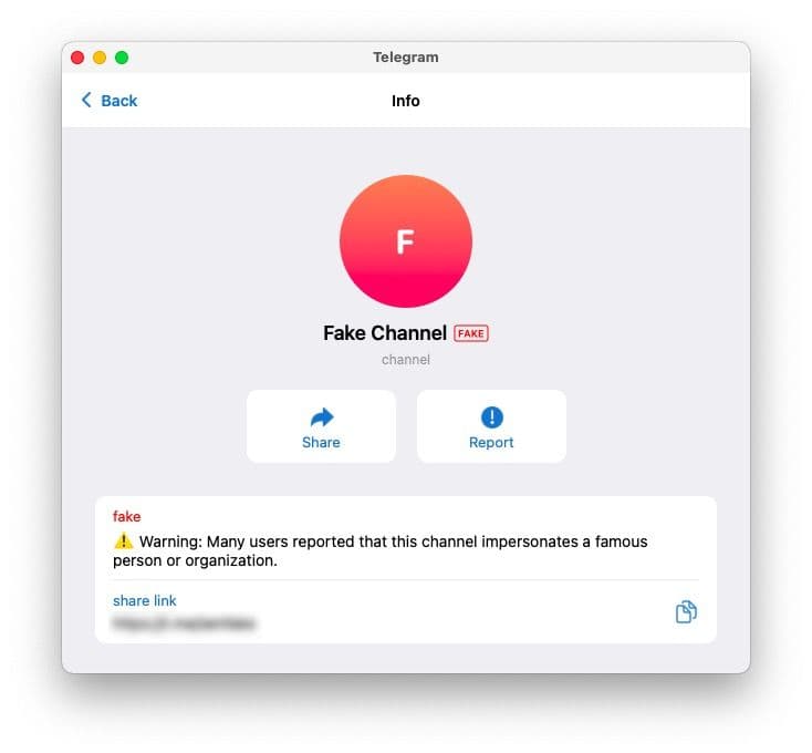 Ранее для борьбы с фейками команда Telegram добавила несколько функций. В частности аккаунты, определенные как фейк, маркируются метками и предупреждениями. В нижней части профиля появляется предупреждение о том, что аккаунт неофициальный.