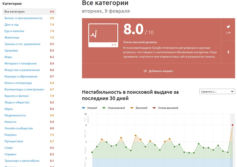 Зарубежные коллеги из Webmaster World отметили колебания в поиске Google, большая часть которых пришлась на период с 7 по 9 февраля.