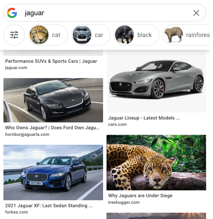 Другим интересным нововведением, анонсированным в этот же день, можно назвать улучшенный поиск по картинкам. Например, для неоднозначных запросов по типу «ягуар» (может подразумеваться как животное, так и машина) поиск сам предложит оба вариант на выбор.