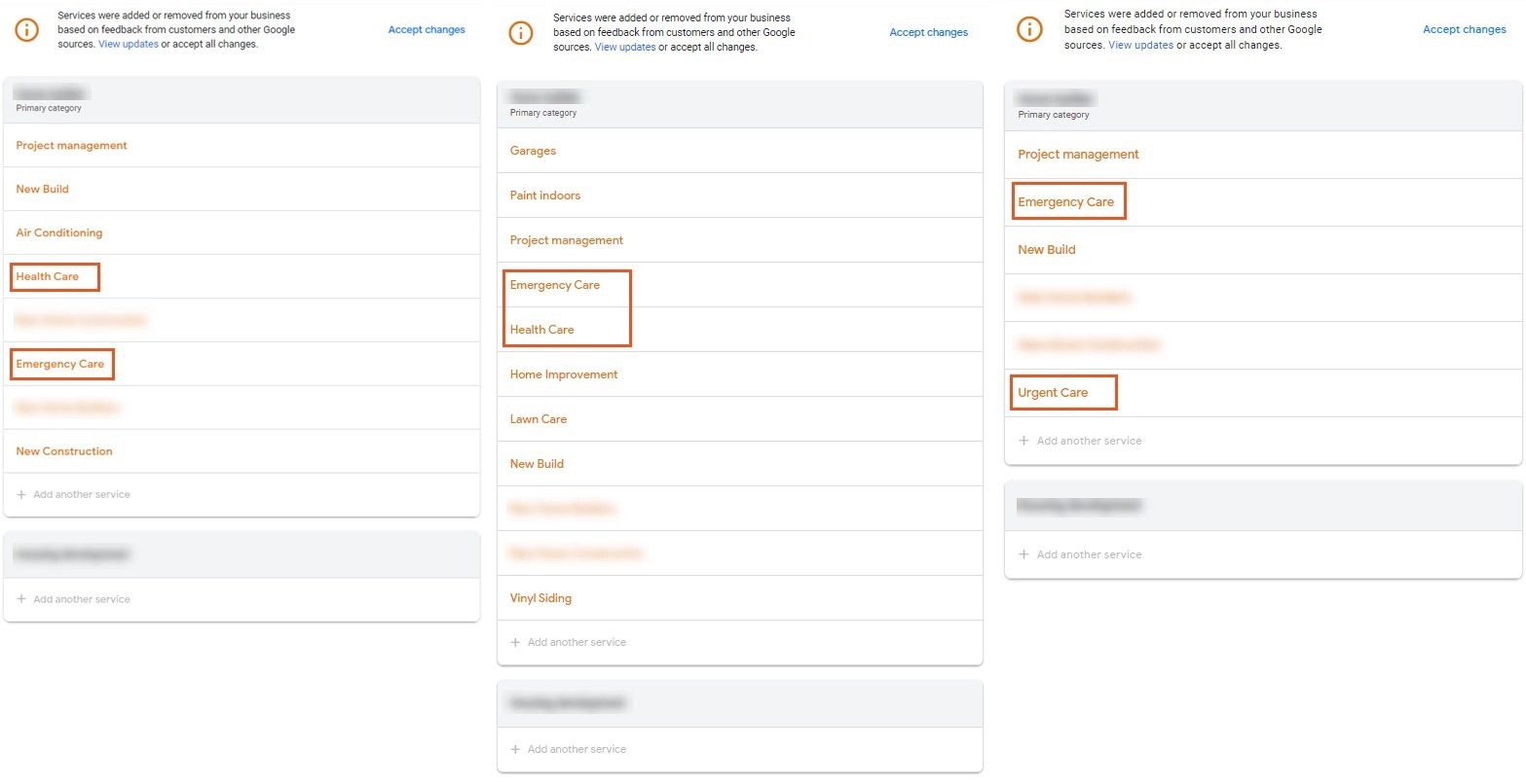 Зарубежные оптимизаторы обнаружили любопытную особенность в GMB. Оказывается, Google может добавлять услуги помимо тех, что указали вы. Об этом высказывались еще прошлой осенью, но только сейчас появился некорректный пример. Райан Мьюс обнаружил в своей карточке GMB строительной компании оказание медицинских услуг.