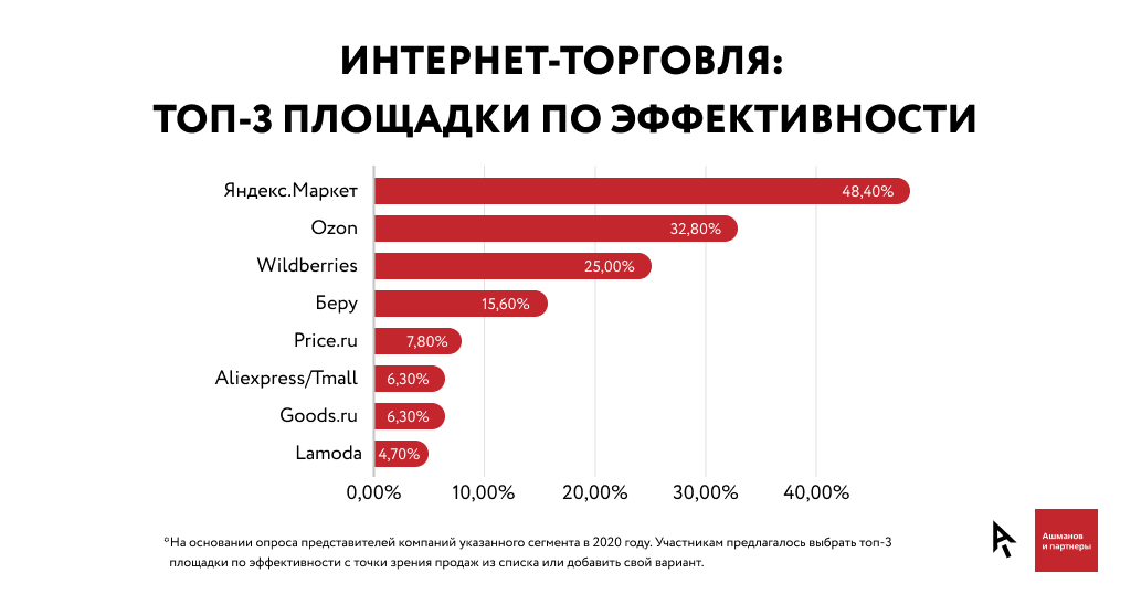 Лаборатория поисковой аналитики «Ашманов и партнеры» провела большое исследование о доли размещения в выдаче крупных маркетплейсов и агрегаторов. В исследование провели участие более 230 специалистов из 5 отраслей: e-commerce, медицина, недвижимость, финансы и продажа авто. Основной задачей исследования стояло выяснить, какие площадки эффективнее всего использовать для продвижения и какова их доля на этом рынке.