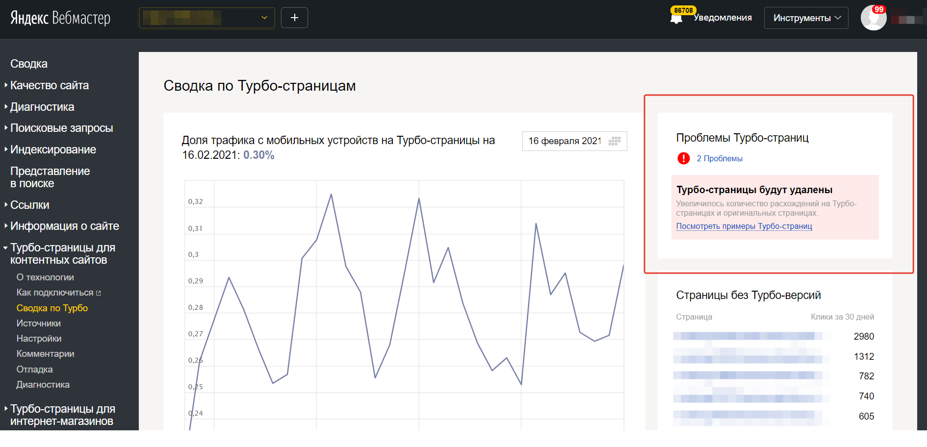 Оповещения о выявленных ошибках теперь приходит на почту, а также отображаются в Сводке Вебмастеров или Сводке по Турбо.