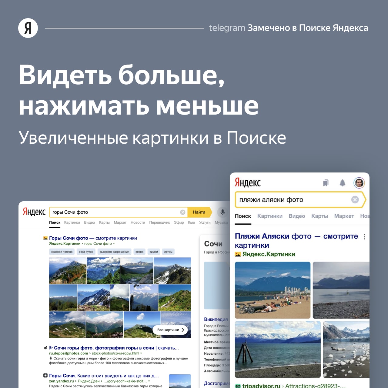 В версии для десктопа Яндекс включил блок с самыми релевантными изображениями по интересующему вас запросу. Теперь не обязательно переходить в раздел «Картинки».