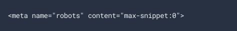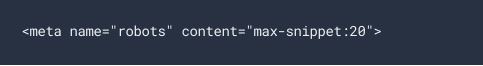 С помощью тега max-snippet вы можете выбрать количество символов текста, которое можно отобразить в результатах поиска. Эта директива игнорируется, если не заполнено значение [number]. Разработчики приводят следующие примеры для использования данной директивы:
