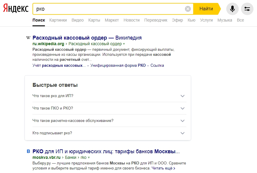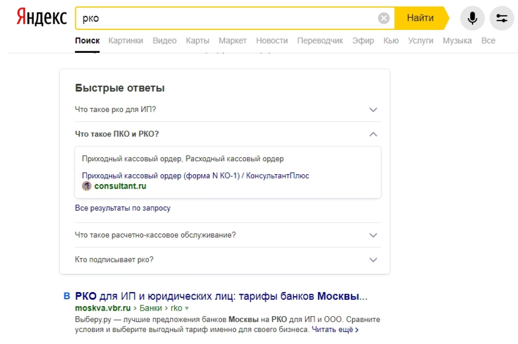 Блок с ответами располагается в топе произвольно: он может быть как сверху, до выдачи, так и между 9 и 10 результатом.