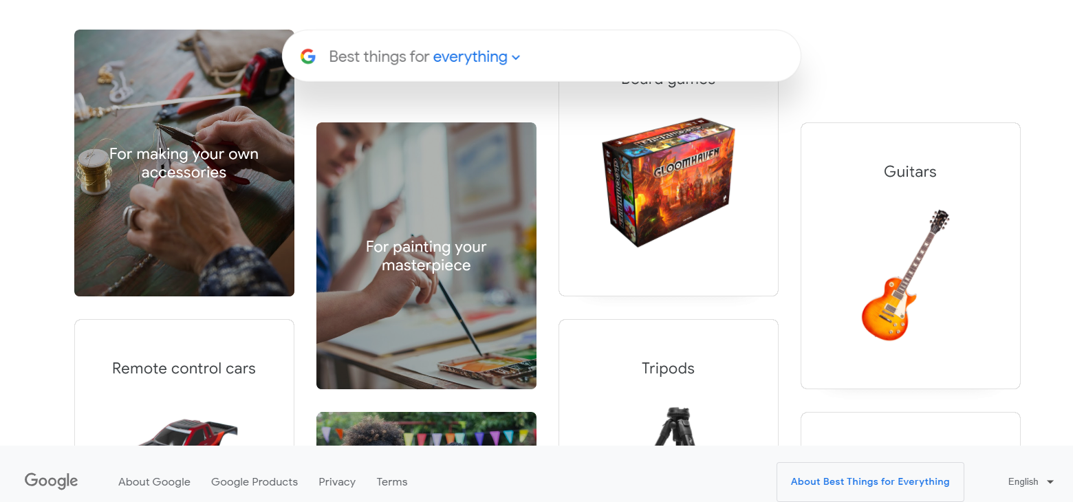 Команда Google Shopping анонсировала запуск нового сайта — Best Things For Everything — на котором будут размещаться самые популярные товары в интернете. Для удобства навигации все товары разделены на 8 категорий: