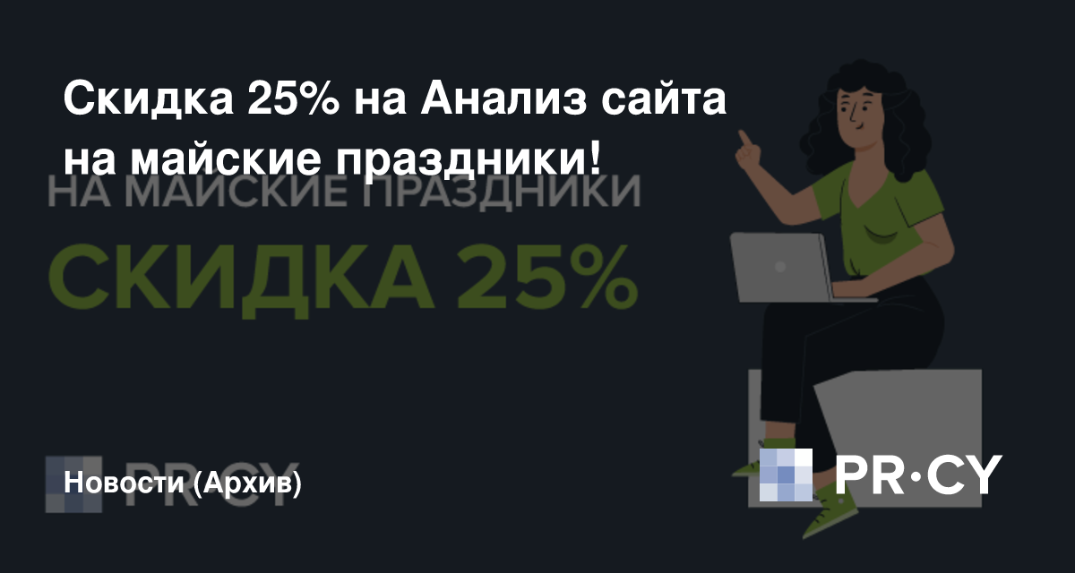 Промокод MAY_2020 дает скидку 25% на сервис Анализ сайта. Действует до 11 мая на любой тариф на месяц. Примените его на странице.