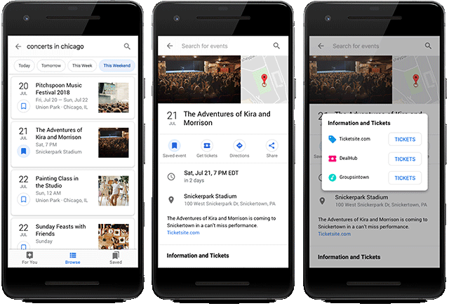 Вот как выглядят расширенные результаты для событий к Поиске Google:
