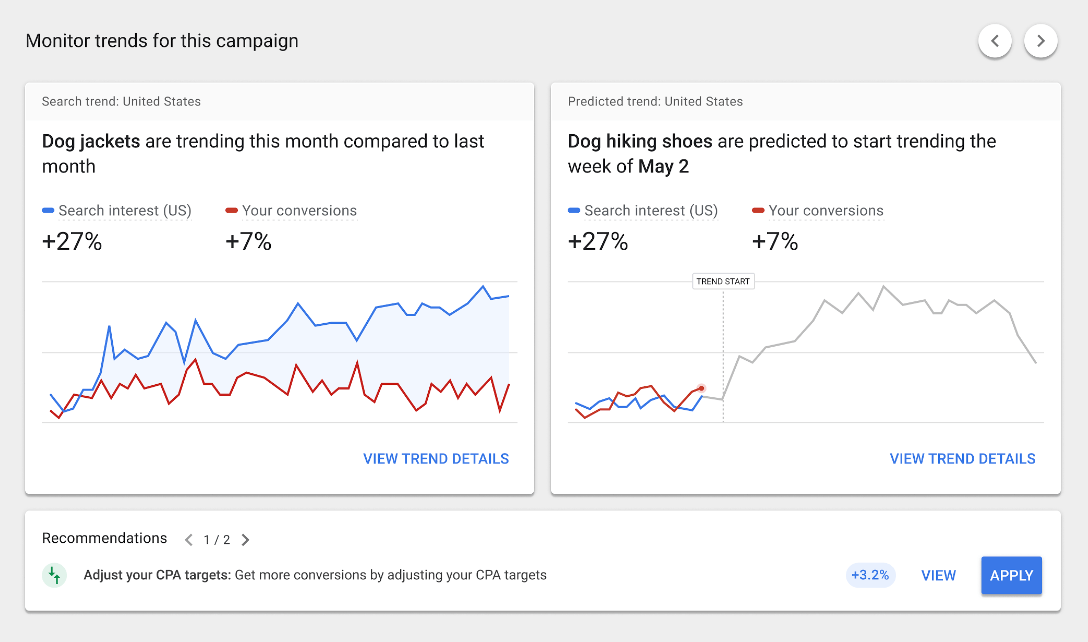 Страница Google Ads Insights обзавелась новыми функциями. Теперь в ней появилась страница с прогнозами, предсказывающая изменения в поведении клиентов в течение ближайших 90 дней. Это поможет рекламодателям лучше подготовиться к предстоящей кампании и определить предстоящие возможности.