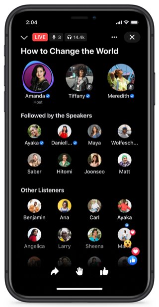 Подобно всем аналогам, Live Audio Rooms обладает стандартным набором функций: