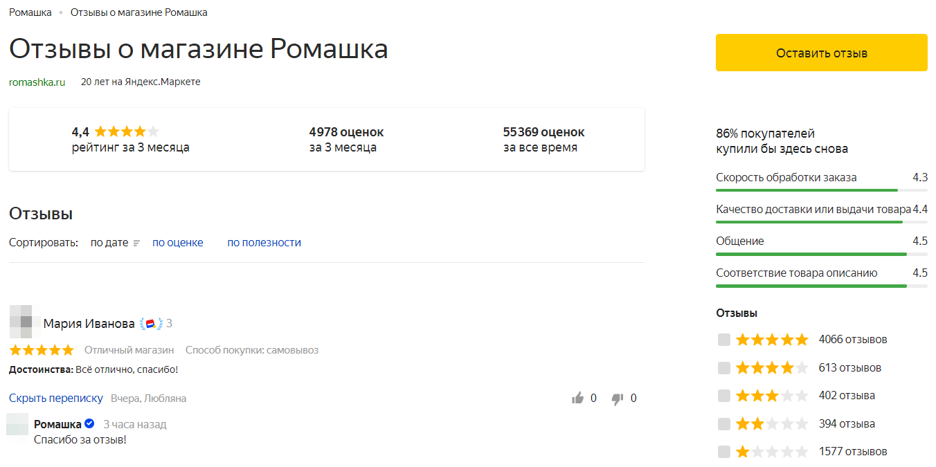 Рейтинг магазина — это среднее арифметическое всех оценок за три месяца, прошедшее проверку на накрутку и спам.