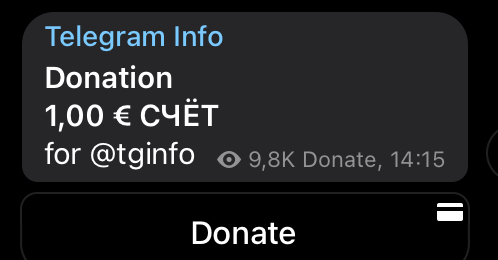В Telegram появился новый инструмент для пожертвования создателям контента — верифицированный бот @donate. Он работает на технологии Payment 2.0. Несмотря на то, что выглядит бот как нативное решение мессенджера, это сторонний сервис сайта smart-glocal.com.