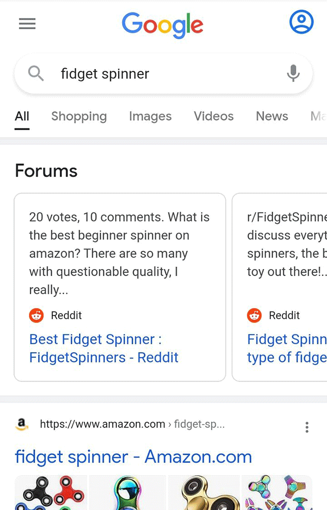 Это напоминает карусель лучших ответов Google, которые тестировались в 2017 году. Правда, у оптимизаторов сегодняшний тест выступает в блоке под названием «Форумы», хотя среди ресурсов могут быть сайты иного формата.