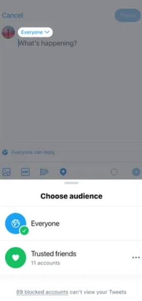 «Trusted friends» («Доверенные друзья») — ограничение аудитории для отправки определенных твитов. Пользователи смогут выбрать, опубликовать твит как общедоступный или только для друзей, по аналогии с функцией «близкие друзья» у сторис в Instagram.
