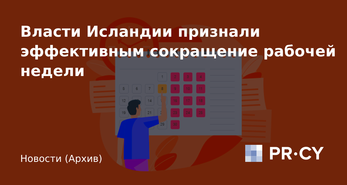 Власти Исландии прислушались к требованию профсоюзов о массовом сокращении рабочей недели. Они провели эксперименты, чтобы проверить гипотезу о том, что сокращение рабочего времени положительно влияет на продуктивность сотрудников.