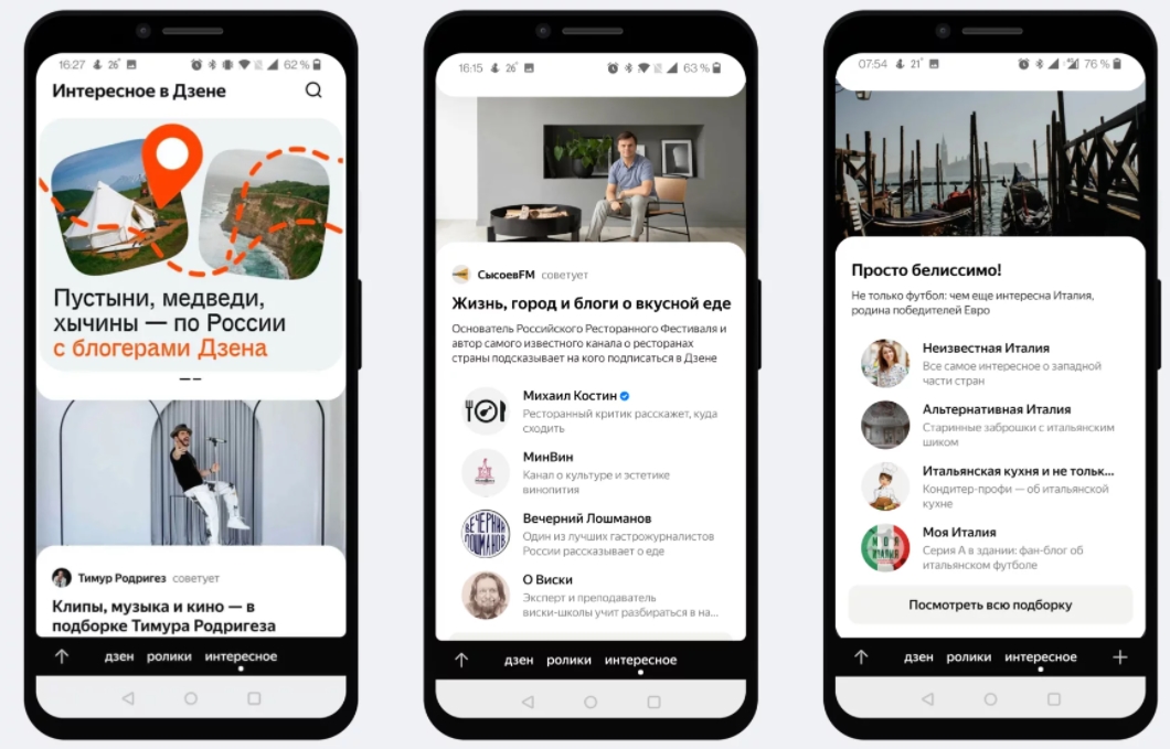 В новом разделе представлены карточки со статьями, видео по теме и подборками от блогеров. Для развития раздела Дзен привлечет известных блогеров и экспертов по темам.