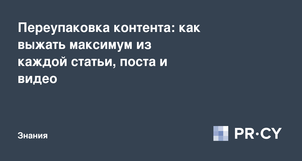 Подготовили классную статью или видеоролик? Не спешите отмечать их галочкой в плане и переходить к работе над следующим лонгридом или вебинаром. Переупаковка поможет выжать максимум из каждой единицы контента и при сравнительно небольших затратах позволит увеличить охват аудитории, привлечь новый трафик, повысить вовлеченность.