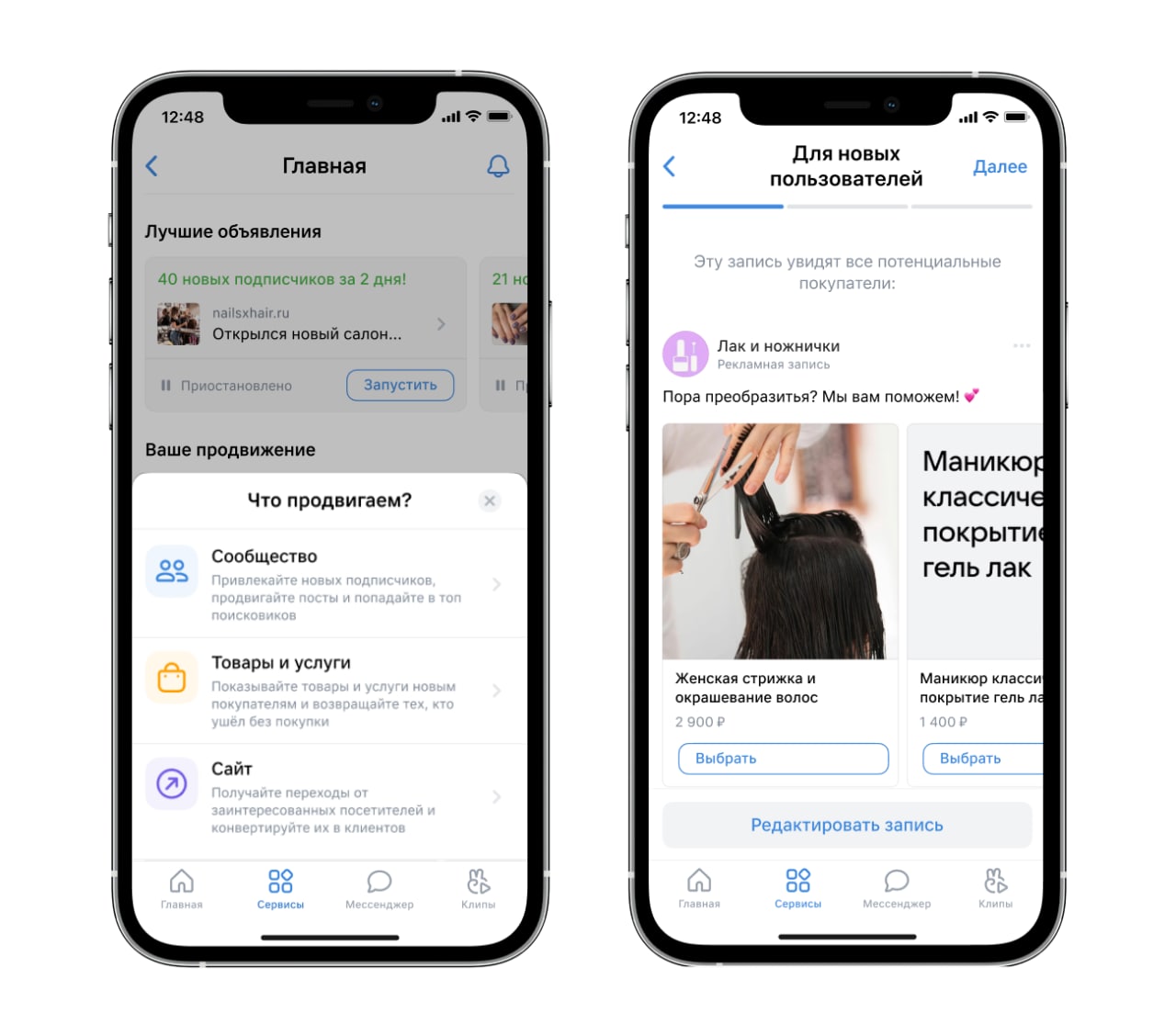Автопродвижение услуг можно запустить с мобильной или с десктопной версии Бизнес ВКонтакте. Новую настройку можно использовать параллельно с автопродвижением товаров: в таком случае будет работать сразу две рекламных кампании.