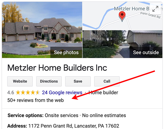 Западные оптимизаторы обнаружили новое отображение отзывов в локальной выдаче Google. Теперь в карточках компаний отображаются не только отзывы и рейтинг в звездах, но и отзывы со сторонних сайтов и упоминаний компании в интернете.