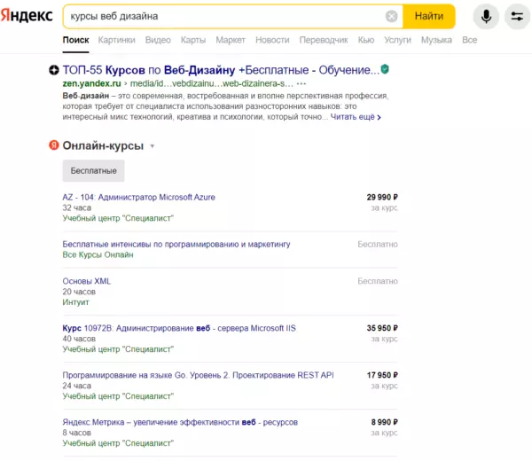 В выдаче появился новый блок, посещенный образованию. Теперь по запросам, связанных с обучением и курсами, появилась информация по образовательным программам онлайн-школ и онлайн-курсов.