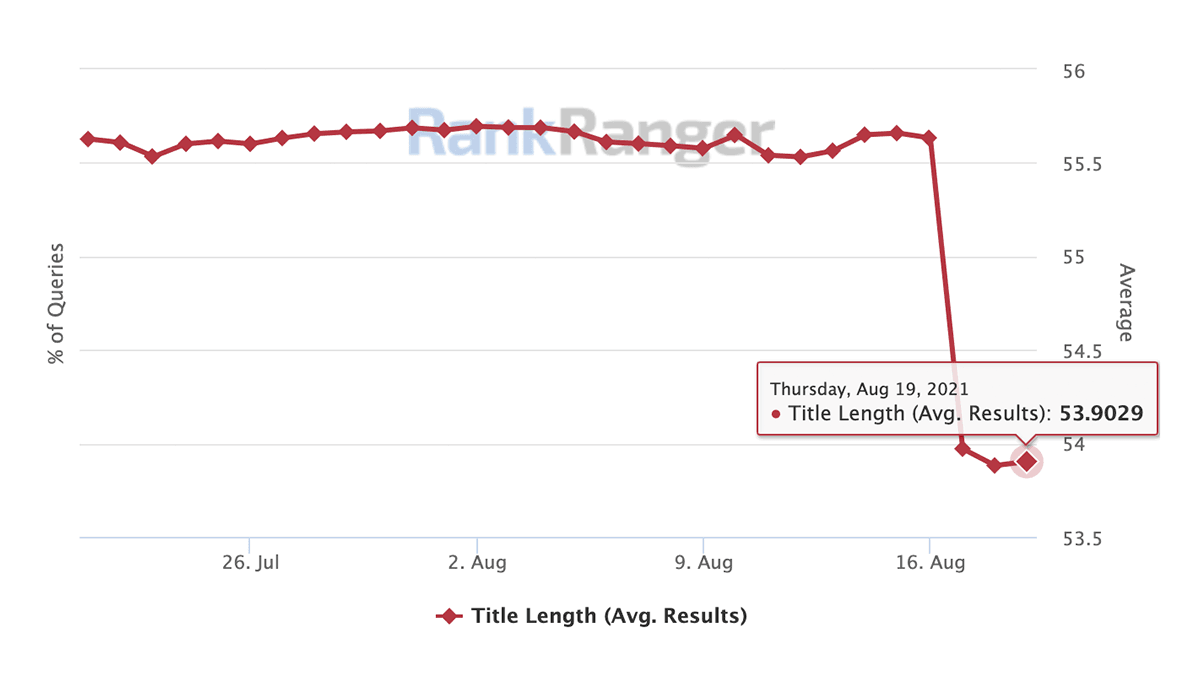 Западные коллеги обнаружили, что с 17 августа средняя длина тегов Title в результатах мобильного поиска сократилась с 55,6 до 53,9 символов. Несмотря на то, что переписывание заголовков сниппетов — регулярная практика для Google, частота таких изменений последнее время сильно возросла.