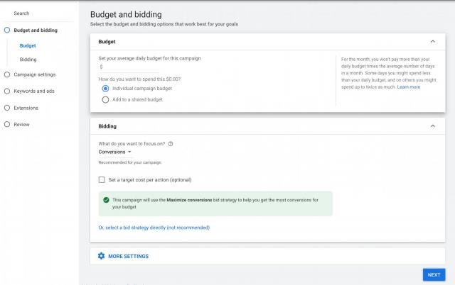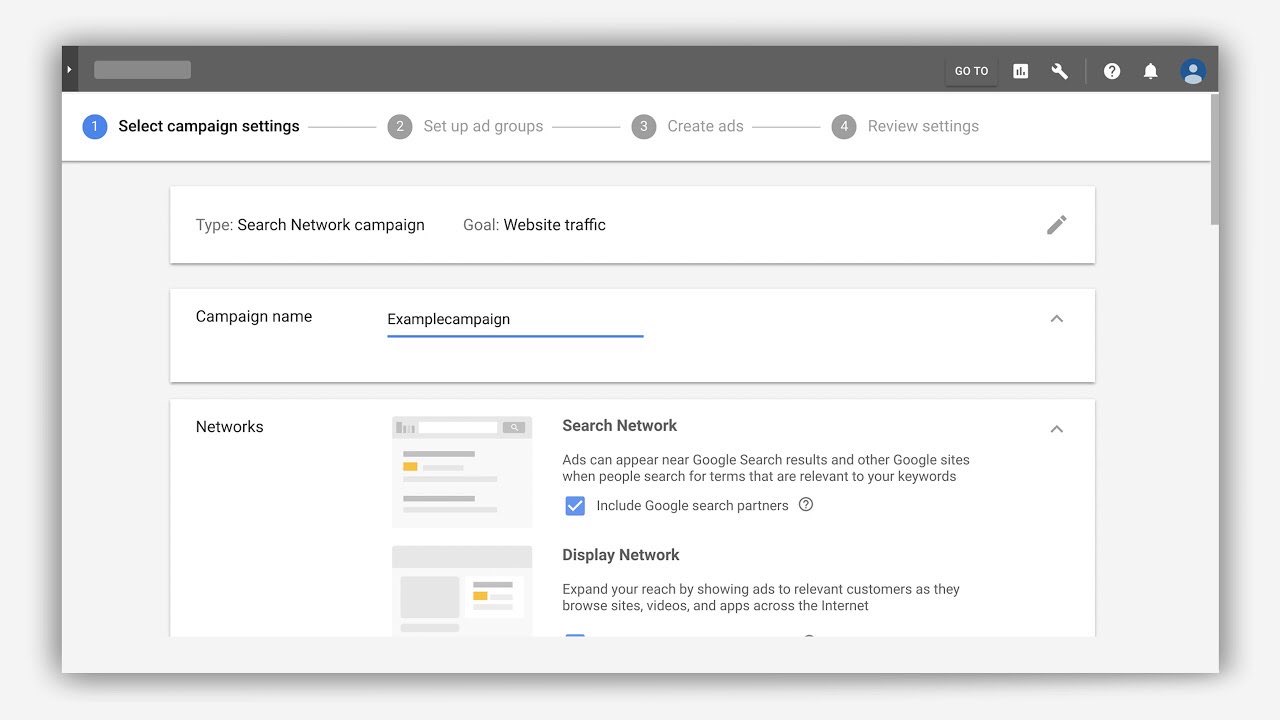 В новом интерфейсе мастера настройки кампании шаги настройки переместились с верхней части в левую боковую панель. Вот так выглядит редизайн мастера: