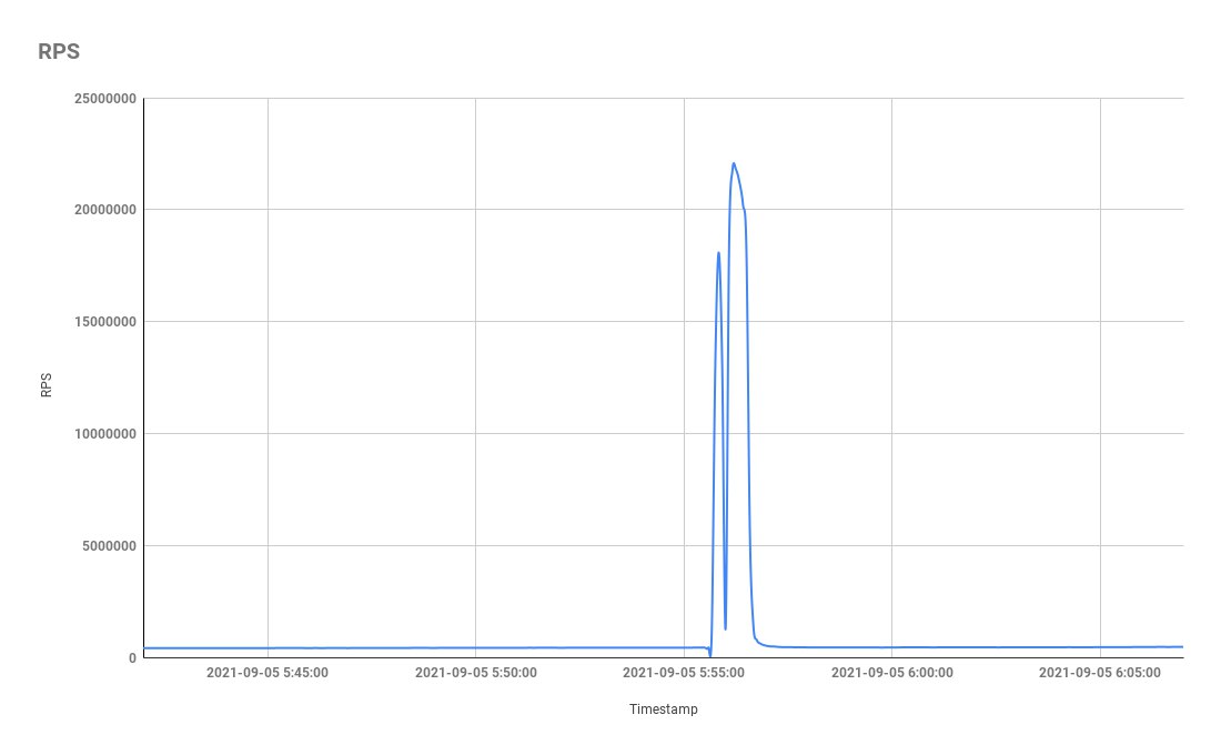 Первой компанией, рассказавшей о подобной атаке публично, стала Cloudflare. 19 августа они зафиксировали атаку с 17 млн запросов. Яндекс зафиксировал аналогичную активность, и сам подвергся нападению 5 сентября.
