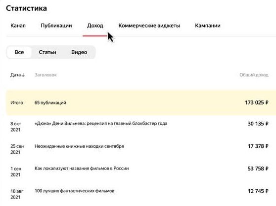 Раньше были доступны данные лишь по общему доходу канала, а теперь команда Дзена добавила детальную статистику по каждой публикации, с помощью которой вы наглядно увидите, какой контент приносит больше всего дохода.