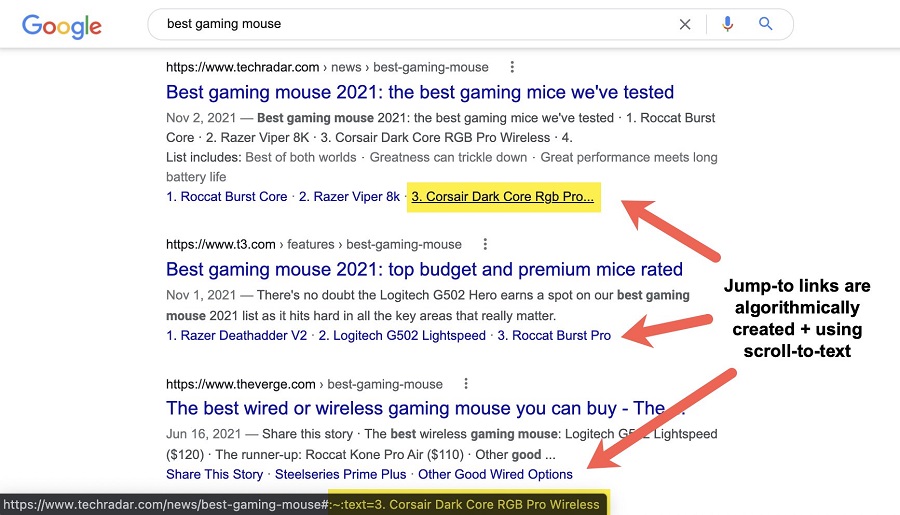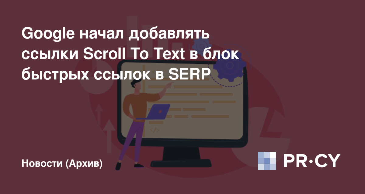 Ссылки формата Scroll to Text создаются автоматически, ведут на конкретный фрагмент текста страницы. С недавних пор поисковик начал добавлять их в блоки с дополнительными ссылками в SERP.