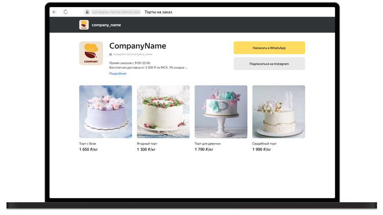 Создать сайт могут все пользователи Яндекс.Бизнеса, достаточно выбрать продвигаемые посты, назначить цену и добавить кнопку для заказа товаров и услуг. Здесь же устанавливается способ коммуникации: телефон для звонка или мессенджер. Статистика по звонкам, кликам и прочим показателям доступна в личном кабинете Бизнеса.