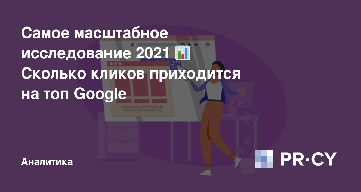 Компания Seoclarity проанализировала распределение кликов по выдаче Google. Чтобы оценить CTR по позиции, устройству, сезонности и отрасли, им пришлось обработать 30 млрд кликов и 750 млрд показов по 17 млрд ключевых слов. Получилось это исследование, из которого мы выбрали все интересное и перевели для читателей PR-CY.