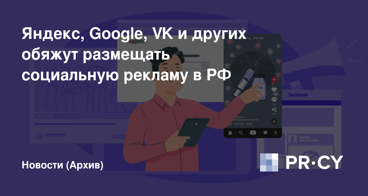 Весной 2021 Госдума приняла квоту в размере 5% на обязательное размещение социальной рекламы в рунете. Под ее действие попадают все ресурсы, чья ежедневная аудитория превышает 100 тыс пользователей в день, в том числе и зарубежные. Среди них, помимо Яндекса, фигурирует VK, Rambler, Google, YouTube, Facebook (Meta) и TikTok.