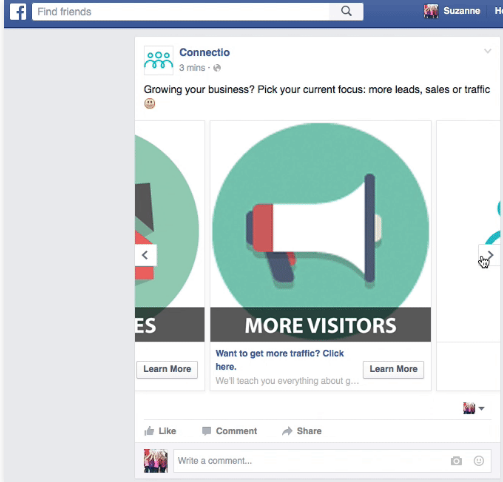 2. Карусель. Объявление из нескольких изображений (от 3 до 6), размещается в новостной ленте.