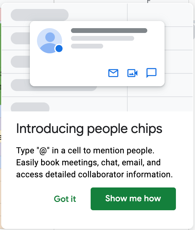 Новая функция позволяет упоминать пользователей в документе с помощью символа «@», чтобы он получил уведомление и обратил внимание на данные. Когда вы открываете таблицу, появляется следующее сообщение: