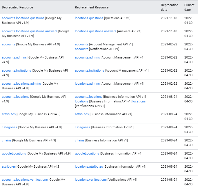 Команда разработчиков Google сообщила о намерении прекратить поддержку My Business API не позднее апреля 2022. На смену ему придет новый набор федеративных API, где каждый будет отвечать за конкретную функцию.