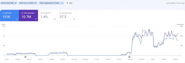 Google начал показывать больше страниц в подробных результатах в выдаче товаров, туда попали даже страницы без разметки. Зарубежные коллеги из Seroundtable зафиксировали всплеск активности начиная с середины декабря.