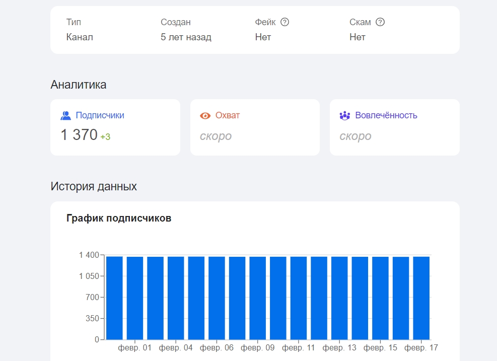 Позже добавим параметры охвата и вовлеченности.