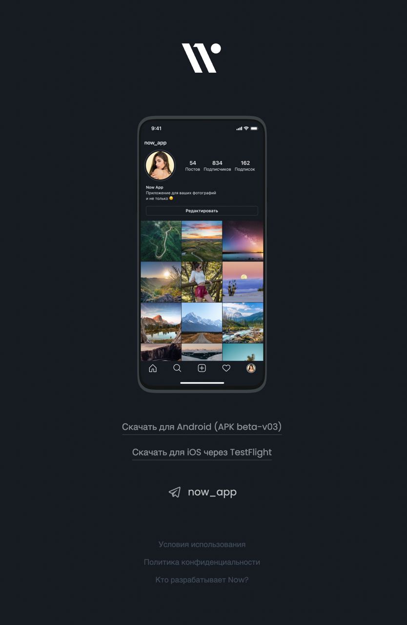 Дизайн и функциональность соцсети очень похожи на Instagram*. Кнопки, юзабилити и оформление практически полностью скопировано с оригинала. Сейчас в Now можно настраивать профиль, публиковать посты, ставить лайки, комментарии, подписываться на другие профили.