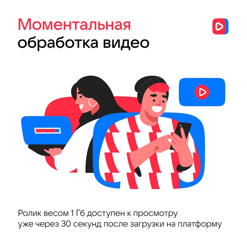 Например, короткое видео объемом до 1 Гб обрабатывается в среднем от 3 до 10 минут дополнительно после загрузки. На VK теперь сразу доступно для просмотра. Если же речь идет о более объемных и качественных видео, то разница во времени может увеличиваться в разы. Это делает видеоплатформу VK самой оперативной для загрузки контента.