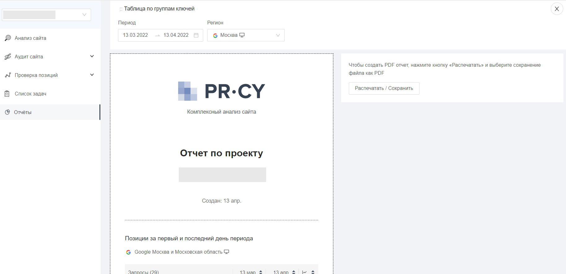 Мы добавили отчеты о позициях сайта за выбранный вами период, чтобы вы могли показывать успехи в продвижении клиенту или руководителю.