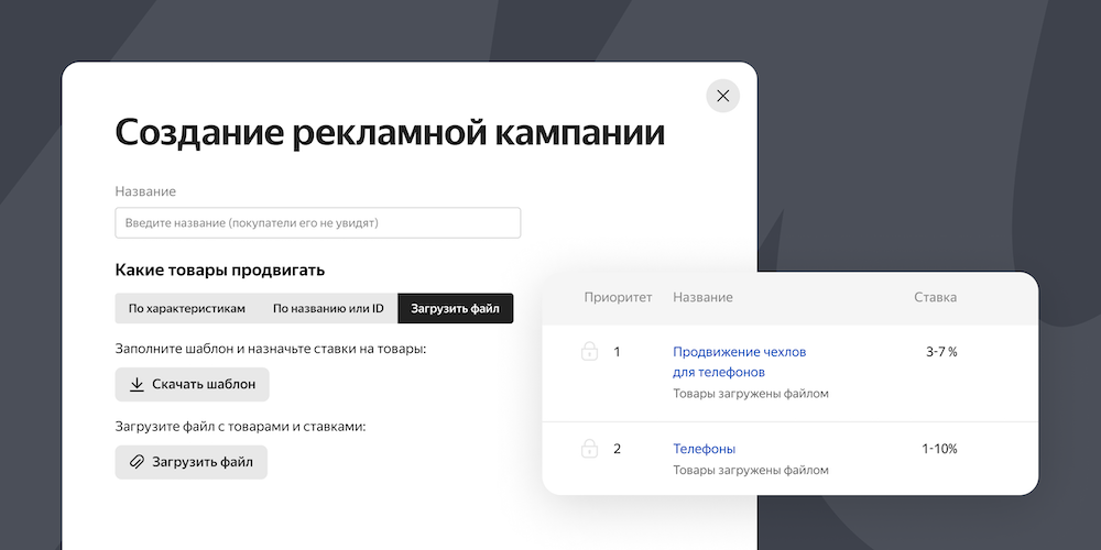 Продвигать товары на Маркете теперь можно через Excel-шаблон. Для назначения ставок на отдельные товары скачайте и заполните файл на странице кампании, а затем загрузите его.
