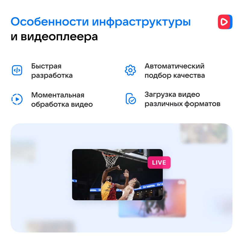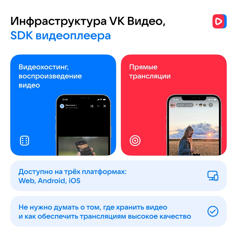 Помимо этого, разработчикам станет доступна облачная инфраструктура VK, с помощью которой можно проводить прямые эфиры для зрителей. У нее есть автоподбор качества в зависимости от скорости соединения пользователя и различные форматы для загрузки видео, объемом до 256 Гбайт.