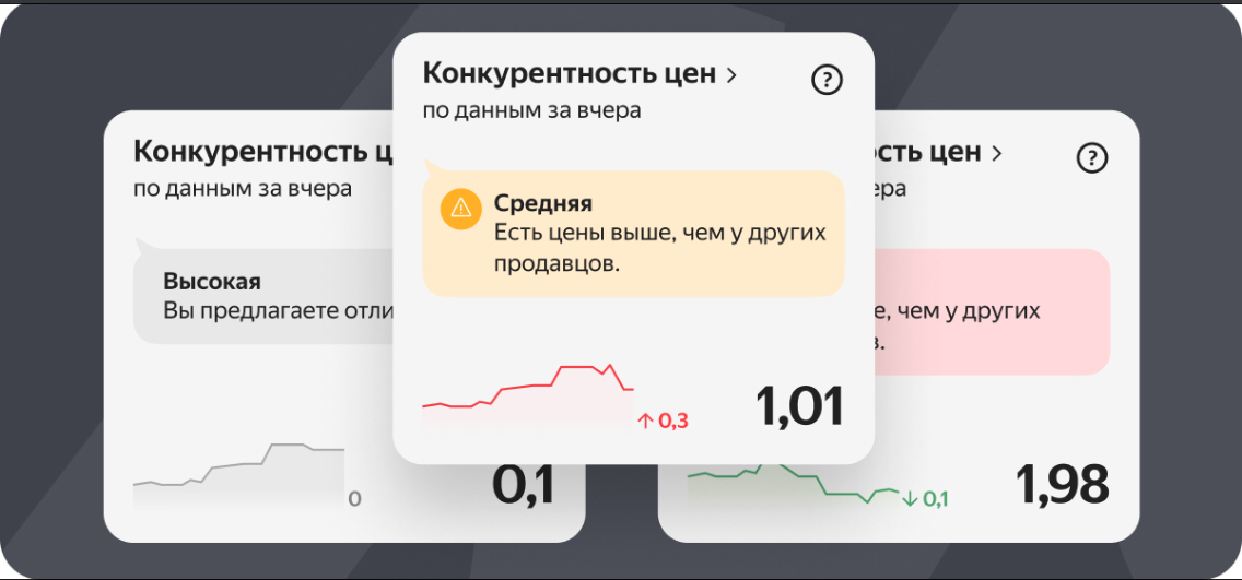 В Сводке появился новый блок — «Конкурентность цен». В нем графически отображается, как ваши цены соотносятся с предложениями от конкурентов. Сильнее всего на показатель влияют цены на популярные позиции, поэтому за ними стоит следить.
